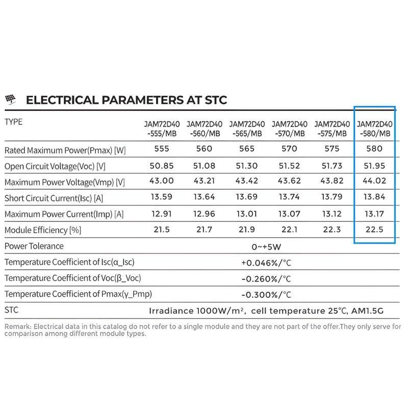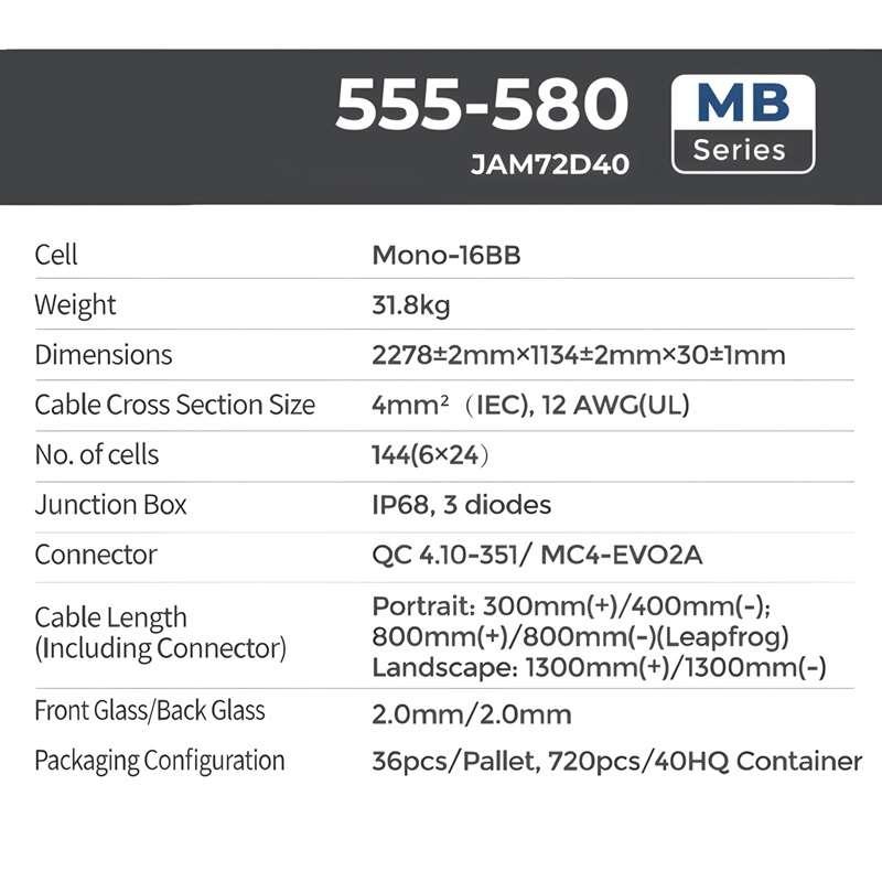 แผงโซล่าเซลล์ JA Solar 580 Watt N-Type 30mm รุ่น JAM72D40-580/MB