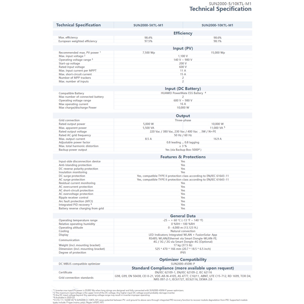 อินเวอร์เตอร์ On-grid 10kW 3 Phase รุ่น SUN2000-10KTL-M1 พร้อมอุปกรณ์เสริม Smart Dongle-WLAN-FE จากแบรนด์ Huawei