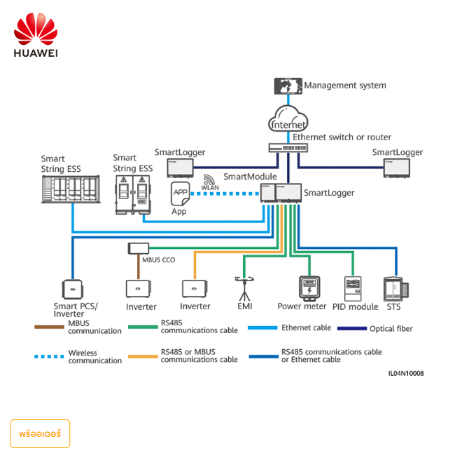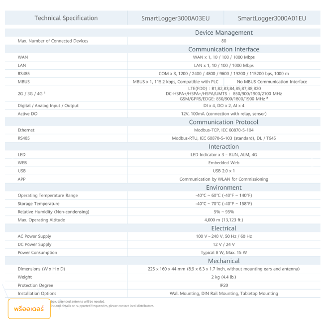 – สามารถเชื่อมต่อกับ Huawei Inverter ได้ถึง 80 เครื่อง